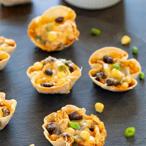 These Mini Chicken Enchilada Cups are not just appetizers but a party for your taste buds! Incredibly easy to make, these crunchy delicacies pack a punch of flavor in every bite and are absolutely addictive.