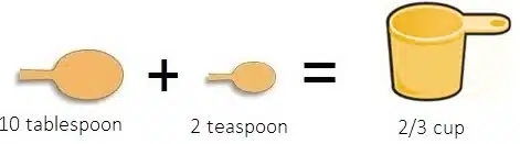 10 Tablespoon + 2 teaspoon = | 2/3 cup |