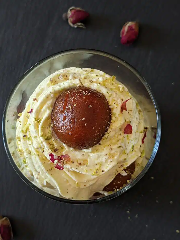 Use chilled gulab jamuns — Do not add hot gulab jamuns to the layers of mousse, as the heat will melt the mousse. Use chilled gulab jamuns for this recipe for the best results.