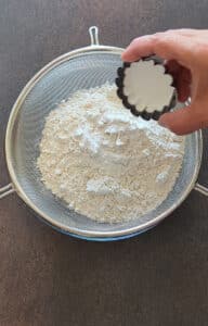 Sift the dry ingredients through a sieve to remove all foreign particles and break up lumps. Sifting also helps the dry ingredients to distribute evenly in the batter.