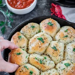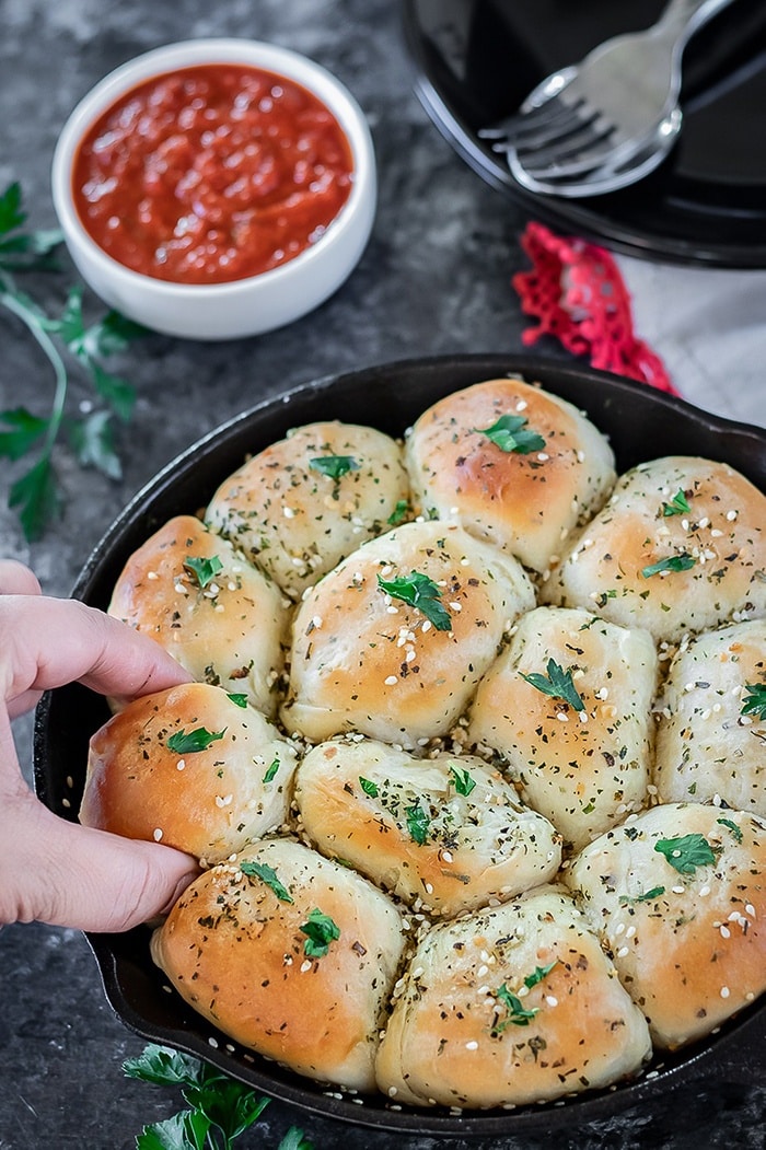 These skillets rolls infused with garlic herb seasoning are a recent favorite in my house, and we enjoy these rolls to the fullest with creamy pasta dishes. Just dip the rolls in the sauce and enjoy all the delicious flavors. It’s so good!