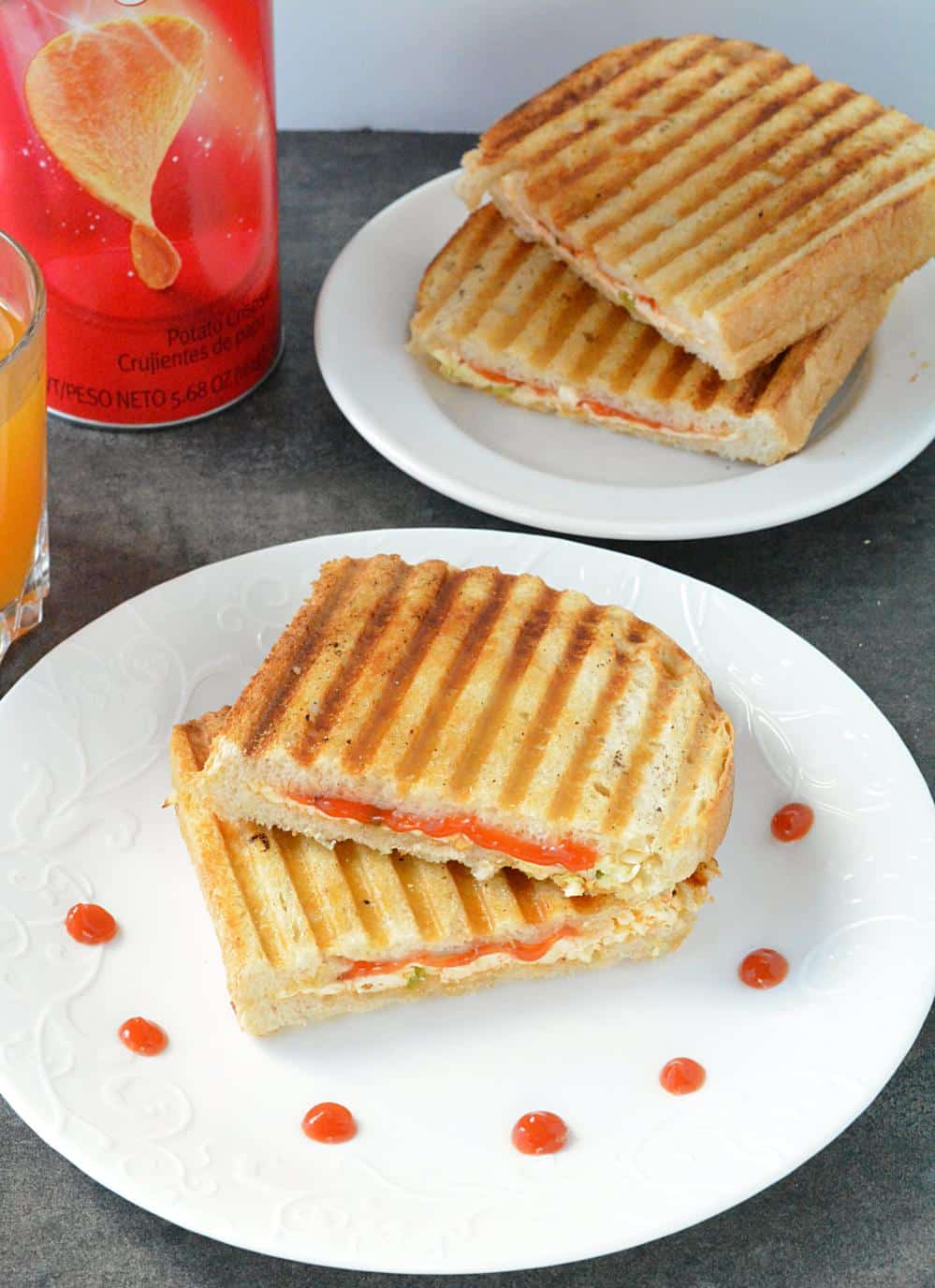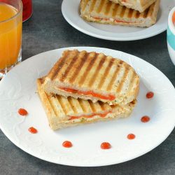 For a healthier sandwich, substitute sandwich bread with wheat bread, sourdough bread or grain bread. If grilling on a tawa – make sure you toast the sandwich on a medium low flame until it is crunchy and crispy. On busy afternoons my lunch is usually a hand- held sandwich or a wrap – healthy and super easy to make.