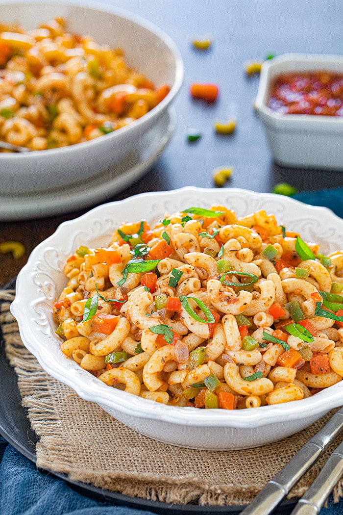 Make it veg or non-veg — This veg masala macaroni is a purely veg recipe. However, you can add grilled chicken pieces for a non-veg variant. You can also add sautéed tofu for an extra punch of protein.