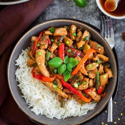 Are you looking for a quick and healthy dinner? Then this Thai Basil chicken recipe will surely hit the spot. It’s loaded with veggies, chicken, and encompasses all the delicate flavors that we all love in Thai food.