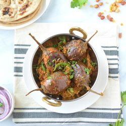 Alternative to round eggplants — I have used round eggplants for this bharwan baingan recipe as they seem an ideal choice. But you can also use long slender ones or Japanese eggplants, which will also make an amazing dish!