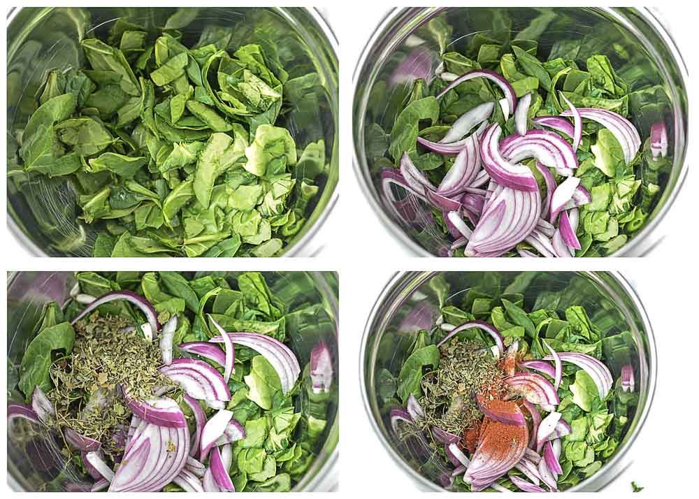 - Heat oil/ghee in a pan. Add whole red chilies and cumin seeds. As they start to sputter, add chopped onions and cook until onions are translucent. Add red chili powder or degi mirch and take it off the flame.