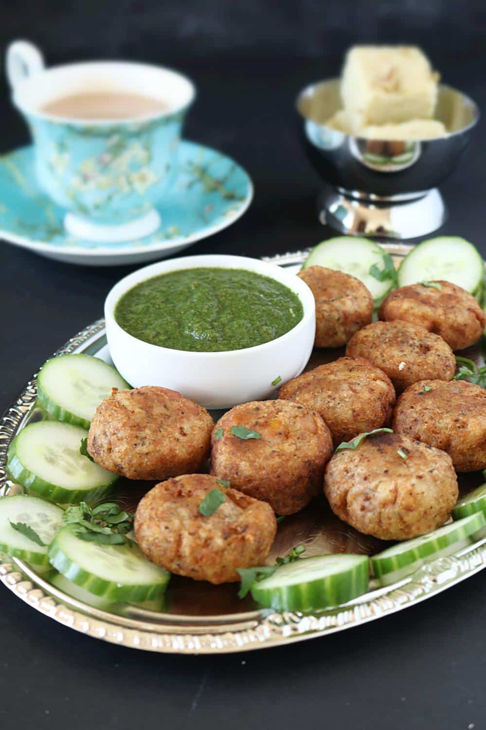 These cutlets are my favorite tea time snack and pair fantastically with vrat ki green chutney.