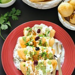 Dahi gujiya is an Indian appetizer where Dahi translated to yogurt and Gujiya means deep-fried stuffed lentil dumplings.
