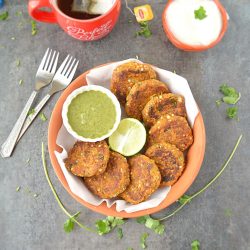 Since it’s Navratri week, here is another yummy delicacy – Sweet Potato Cutlet. Also referred to as shakarkandi ki cutlet. This healthy, gluten-free, no onion no garlic cutlet is super yum and easy to prepare. Just toss everything together, mix, shape and cook. A perfect recipe for Navratri or any other vrat. No one can tell the difference, even the picky eater will eat it without a fuss. 😉
