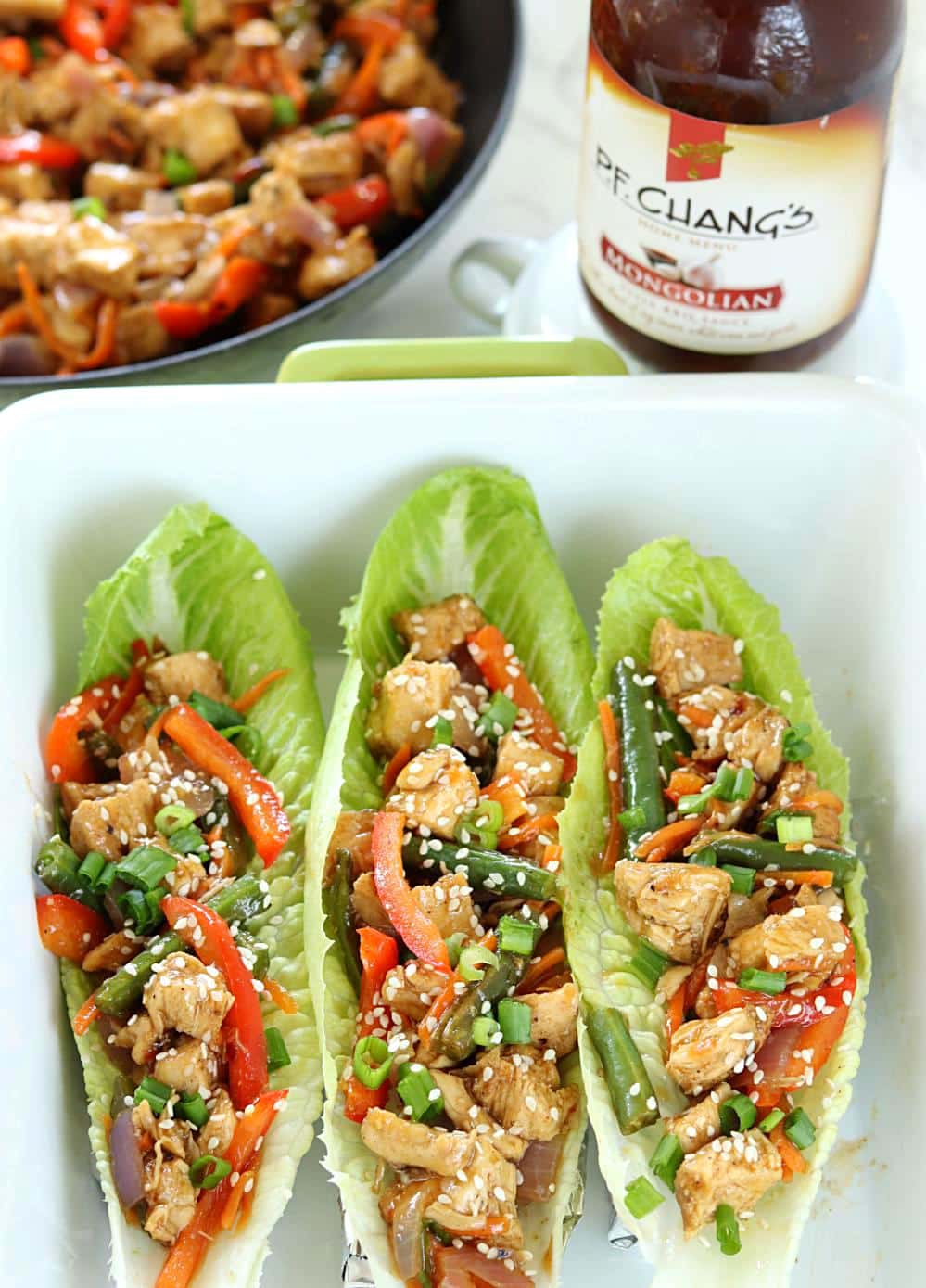 For this recipe, grilled chicken and sauteed veggies smothered in an incredible P.F. Chang’s® Home Menu sauces are served over a bed of fresh lettuce leaves. You will love P.F. Chang’s® Home Menu sauces on just about everything from fresh veggies to any kind of meat.