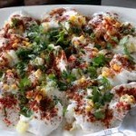 Chaat means street food or snack. Savory snacks made with potato cutlets, spicy dips called chutneys and topped with blend of spices.