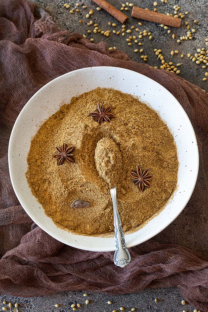 Collectively the term ‘garam masala’ means a warming spice blend.