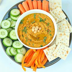 Homemade gluten-free and vegan hummus recipe that will surely be a hit at your next gathering! Easy to assemble and packed with flavor! Spicy Chickpea Hummus Recipe