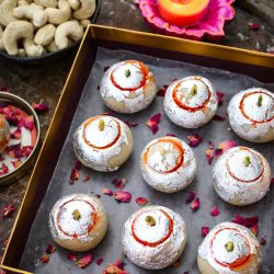 In this recipe, powdered Kaju stuffed with gulkand makes for a luxurious treat fitting for any holiday season! Cashew lovers, this one is for you!