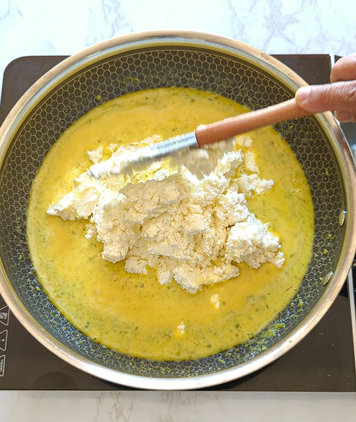 - Soon the mixture will start to thicken. Tip — Regulating heat while cooking — You need to be extra careful by maintaining the heat throughout the cooking process, as the paneer and cream mixture may stick to the base of the pan if cooked on high heat.