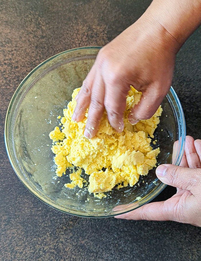 - Once the mixture has cooled completely, knead it until perfectly smooth. This step is essential to reach the maximum creaminess that makes this recipe drool-worthy. Knead the dough for ultimate creaminess.