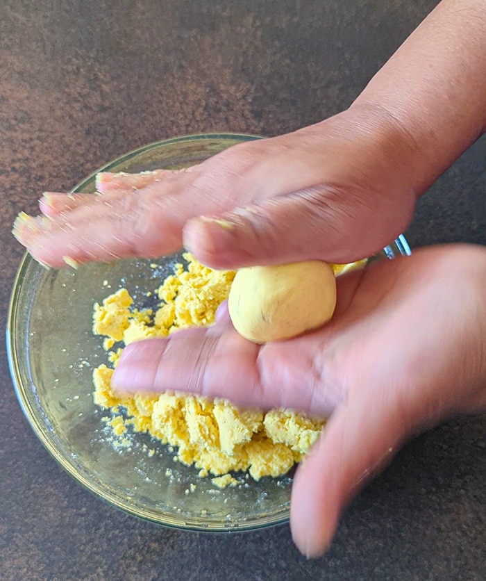 Adding flavors and irresistible delectability — These ladoos are prepared by adding a touch of kewra and elaichi/ cardamoms, which is quite sufficient for its flavoring. However, you can add a few drops of rose water to the prepared dough to enhance its flavor.