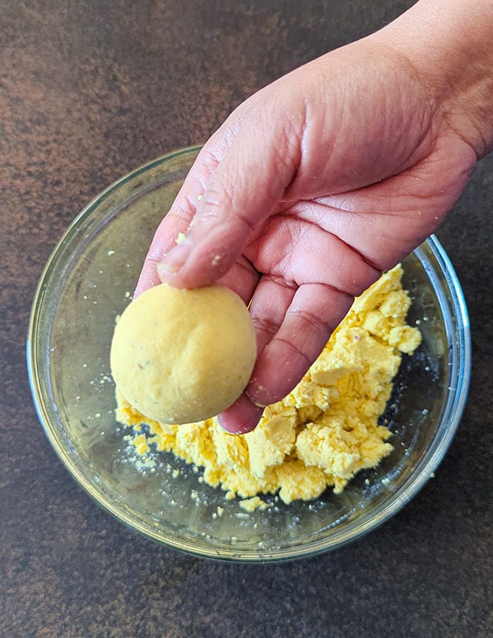 - Let the mixture cool down before rolling them into ladoos. However, do not cool the mixture completely.