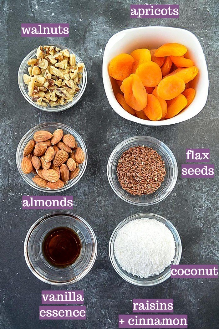 » Dried Apricots – The key ingredient and a natural sweetener that helps bind everything together. Dried Apricot is an extremely delicious, and versatile fruit to play around with.