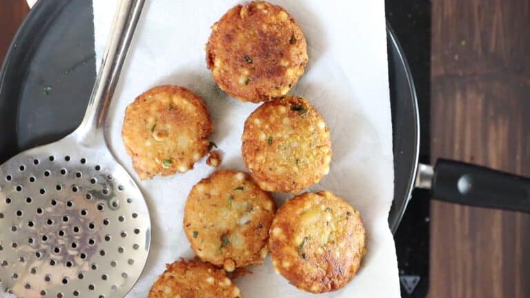 These sabudana tikkis are naturally gluten-free and vegan and make an excellent grain-free diet on fasting days, such as Navratri, Janmashtmi, and Mahashivratri.