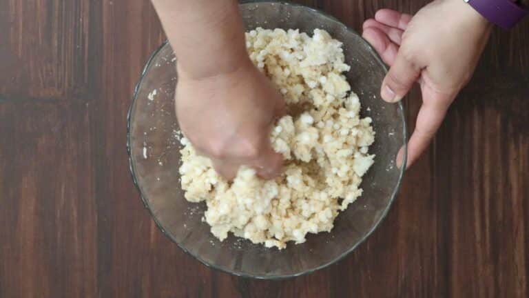 - Add mashed potatoes and ground peanuts. Tip — For a lump-free, smooth-textured mix, always grate the potatoes and then mash them into the mixture.