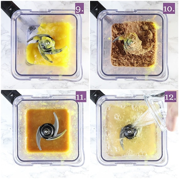 - Transfer the cooled pulp to a blender. Add jaggery. Blend until smooth. Pour in 4.5 cups of water and blend until thoroughly combined.