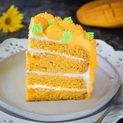 The whipped cream mango-flavored frosting tops the cake with glamour and makes it completely irresistible.