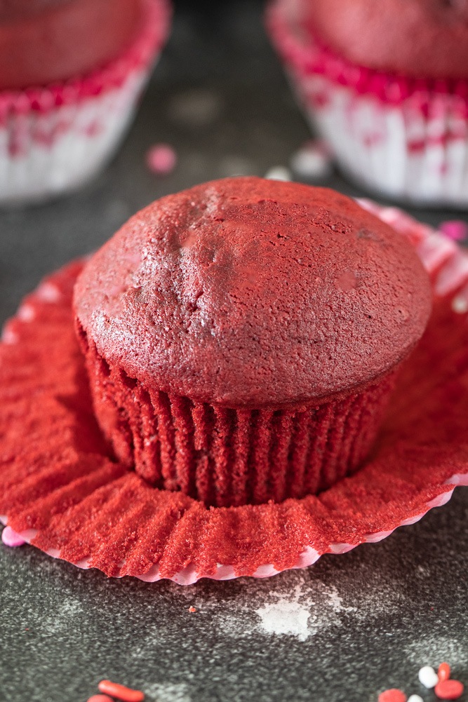 Key to achieving the perfect color — These eggless red velvet cupcakes are so-called because of their deep red color that comes from the added food color. To get their signature red color, make sure to add the right amount of cocoa powder and red food color to create the color magic.