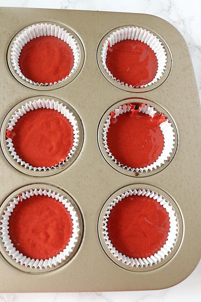 - Evenly distribute the batter between 12 cupcake liners. Fill each liner about halfway full.