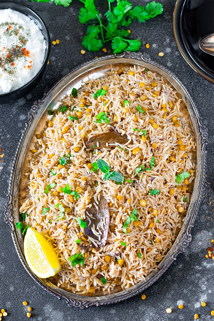 » To increase the spice level, feel free to add a small chopped green chili to this pulao. Chana Dal Pulao
